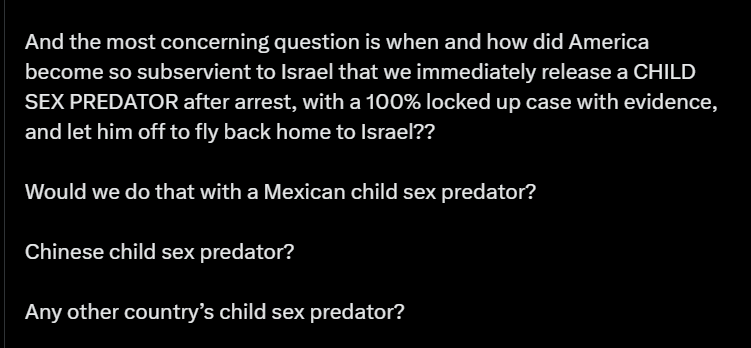 We need to be the America that allows war torn children to come here for life saving surgeries and the America that never releases a foreign child sex predator that our great [law enforcement] caught.