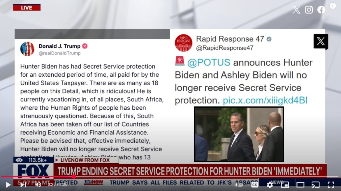 Trump Terminates Secret Service Protection for Hunter and Ashley Biden
